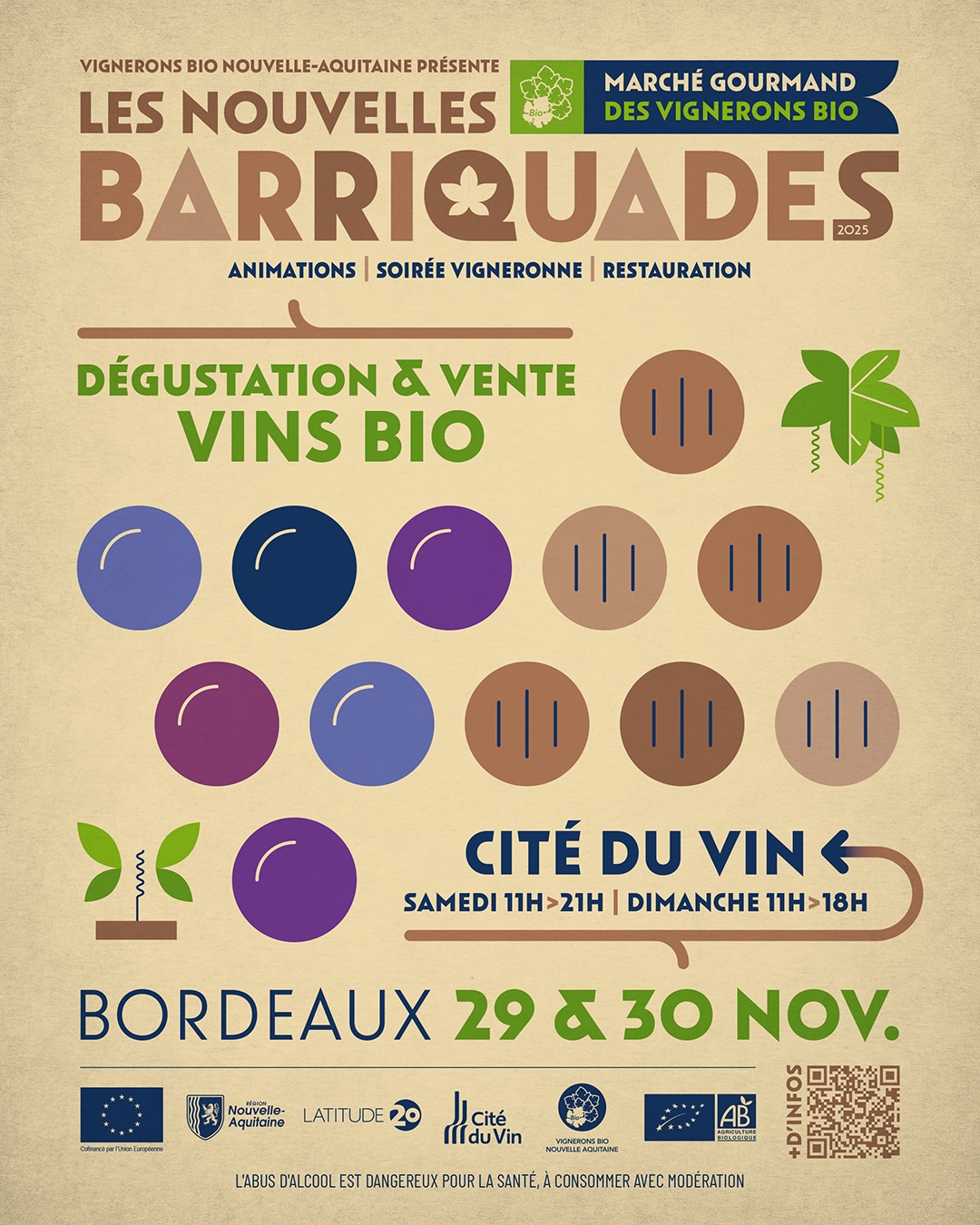 The last week-end of november, meet us to La Cité du Vin (Bordeaux) with Vignerons Bio de Nouvelle-Aquitaine for Les Nouvelles Barriquades.